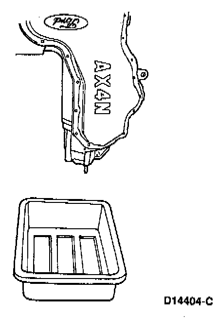 27. Remove 19 transaxle pan bolts. Remove transaxle pan and gasket.