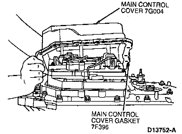 Rotate main control valve body clockwise. Remove manual control valve actuating rod from manual control valve and remove main control valve body and gasket.