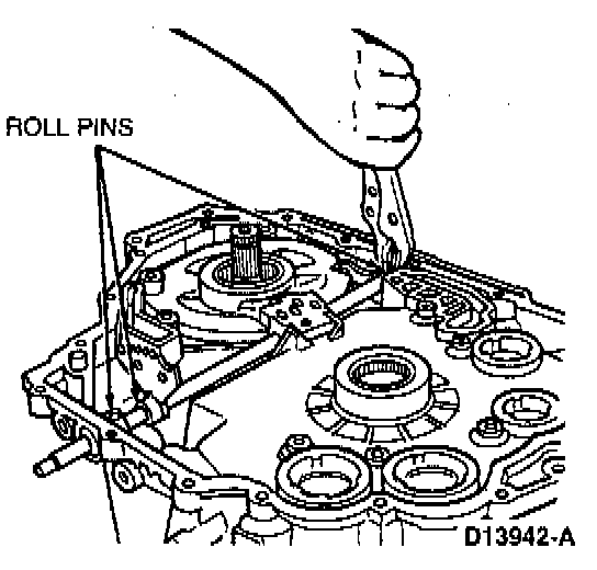Remove and discard three roll-pins from manual control lever shaft using locking pliers.