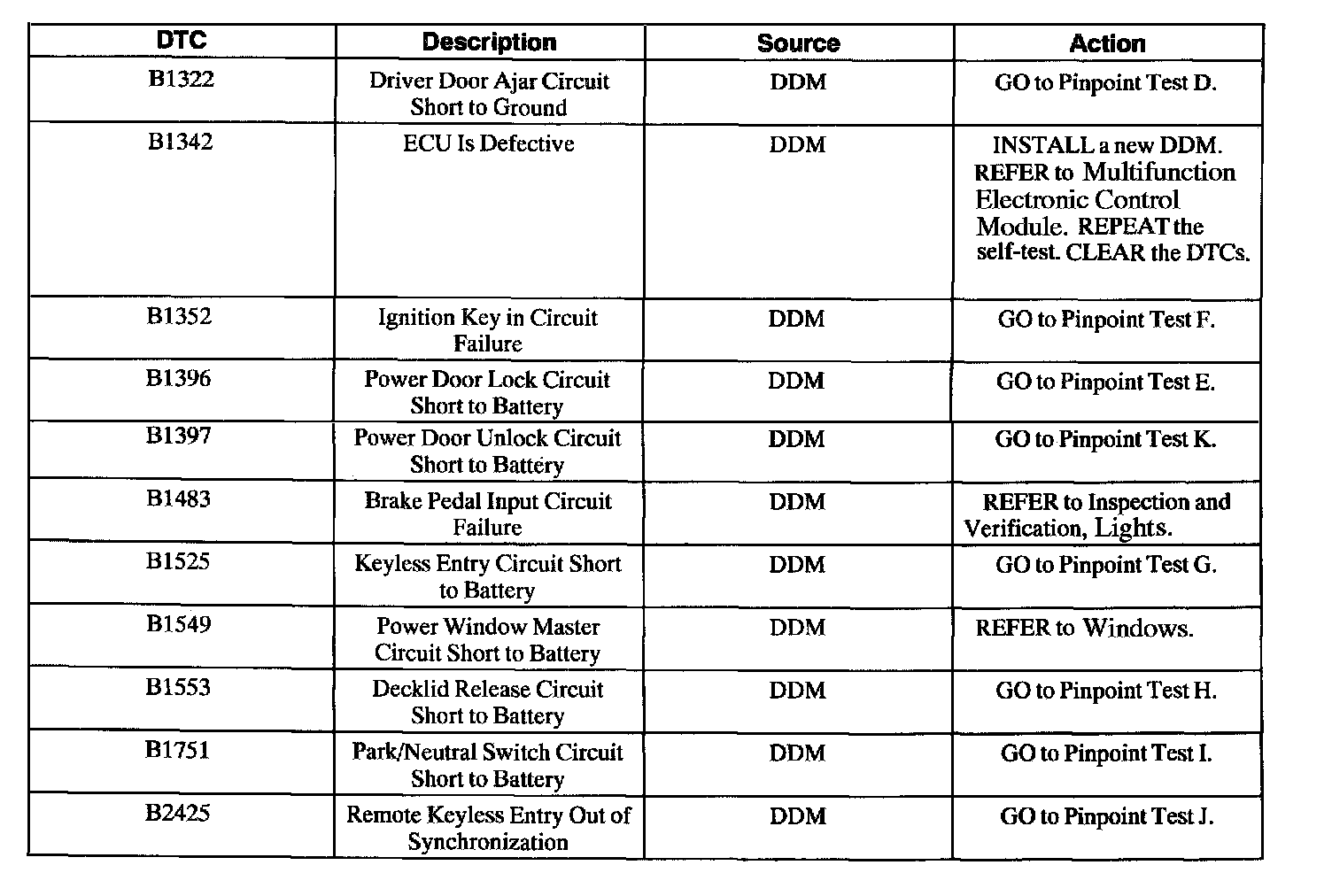 DDM Diagnostic Trouble Code (DTC) Index