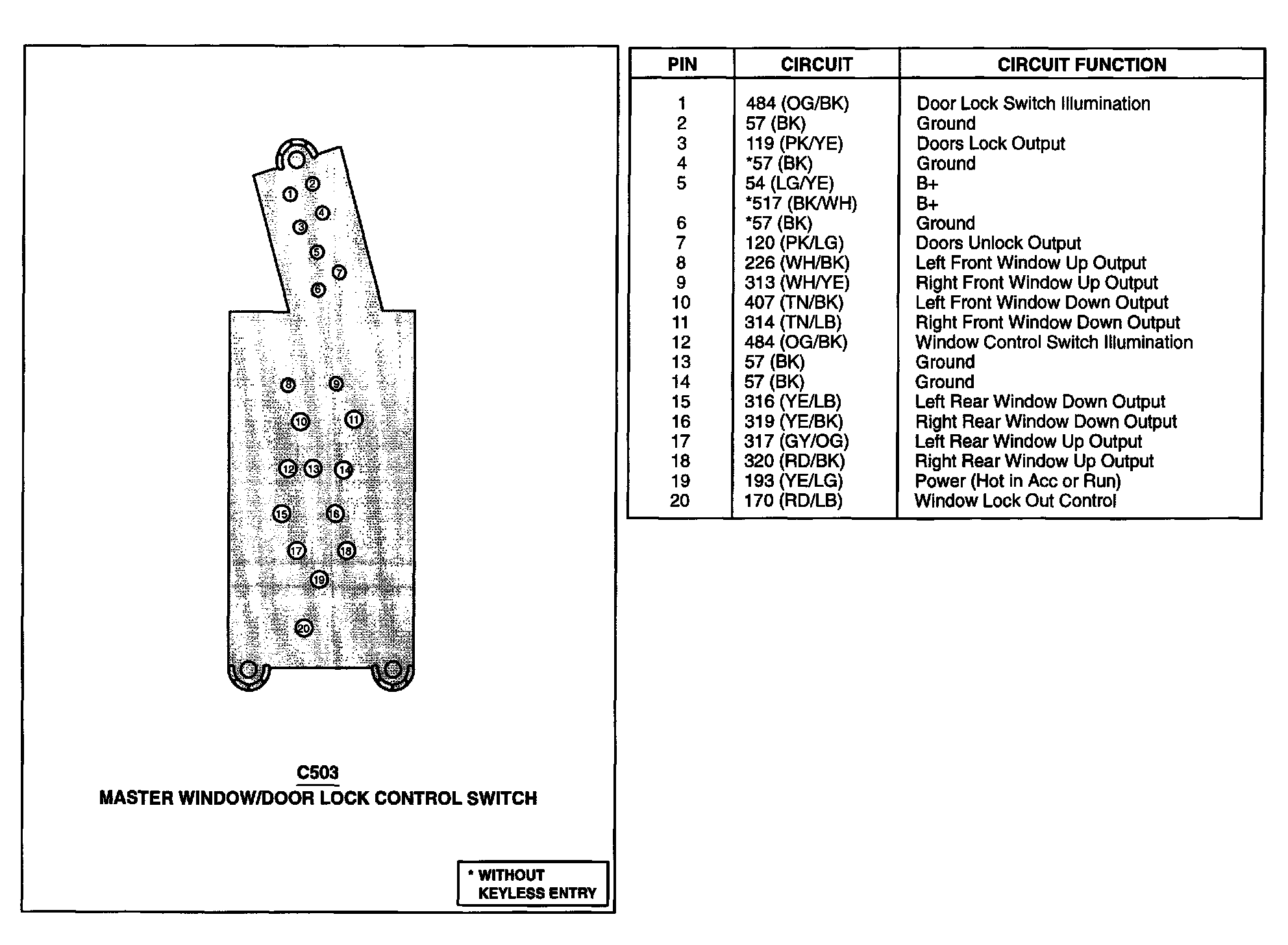 Master Window/Door Lock Control Switch