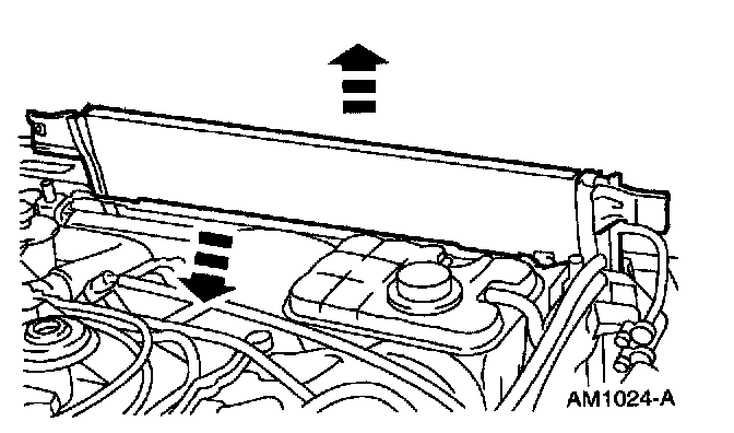 8. Tilt the radiator back and lift out the A/C condenser core.