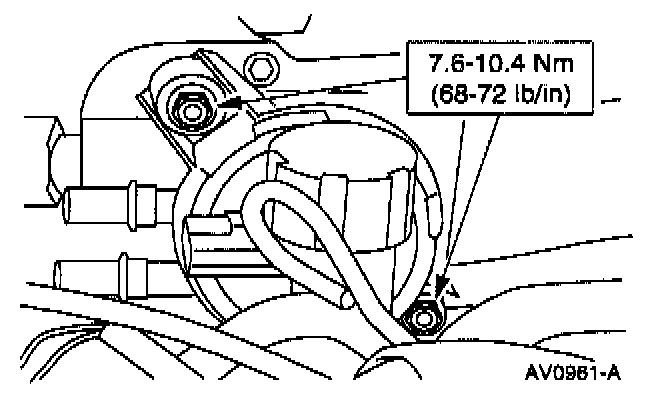 5. Remove the two nuts and the evaporative emission canister purge valve.