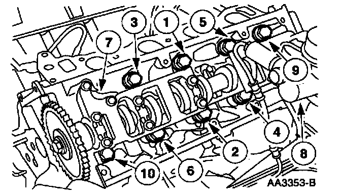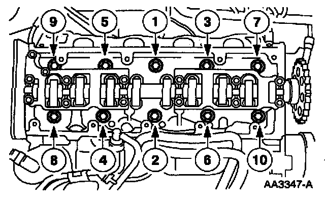Install ten bolts and tighten in sequence in six stages: