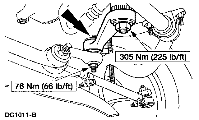 2. Install the steering gear sector shaft arm onto the steering sector shaft arm drag link. Install the nut and a new lock nut.