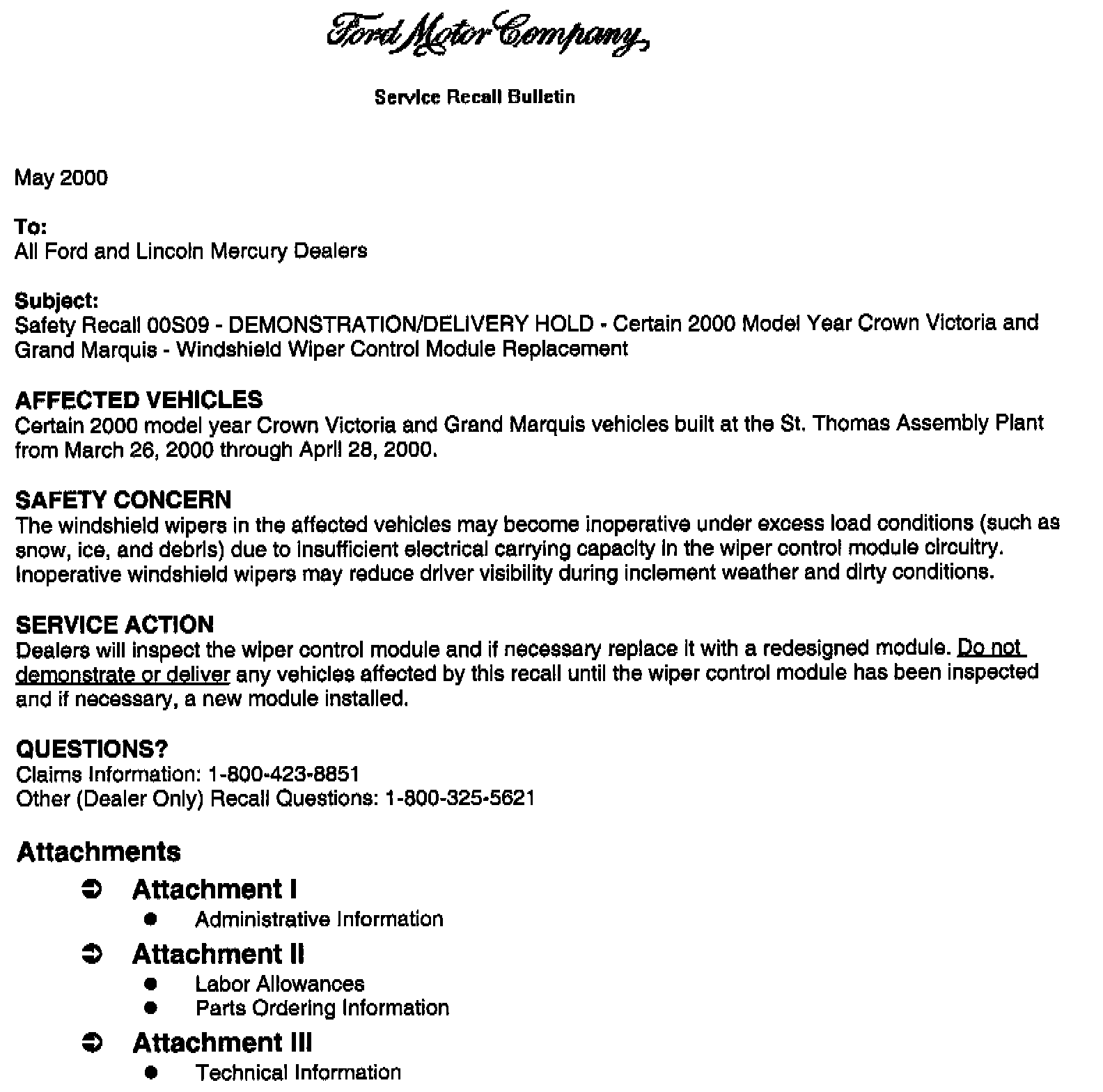 Recall - Wiper Control Module Replacement