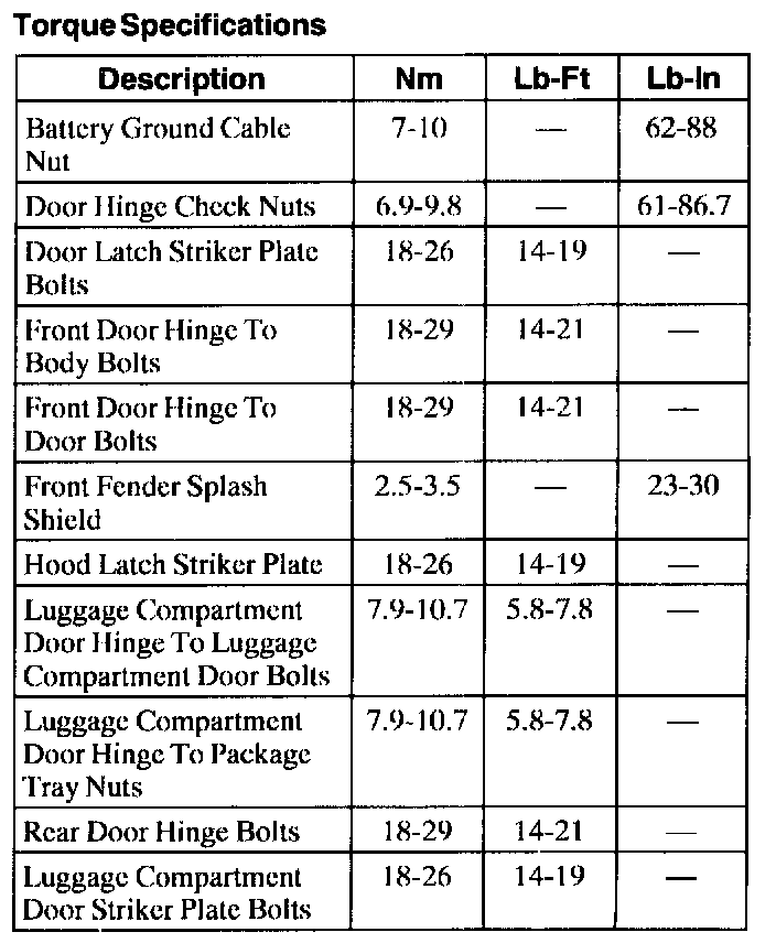 Doors, Hood and Trunk: Specifications