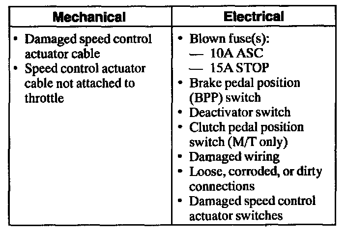 NOTE: If any concerns are noted with the speedometer, stoplamps, or horn, address those concerns by referring to their associated systems before continuing speed control diagnosis.1. Verify the customer concern by operating the speed control system.