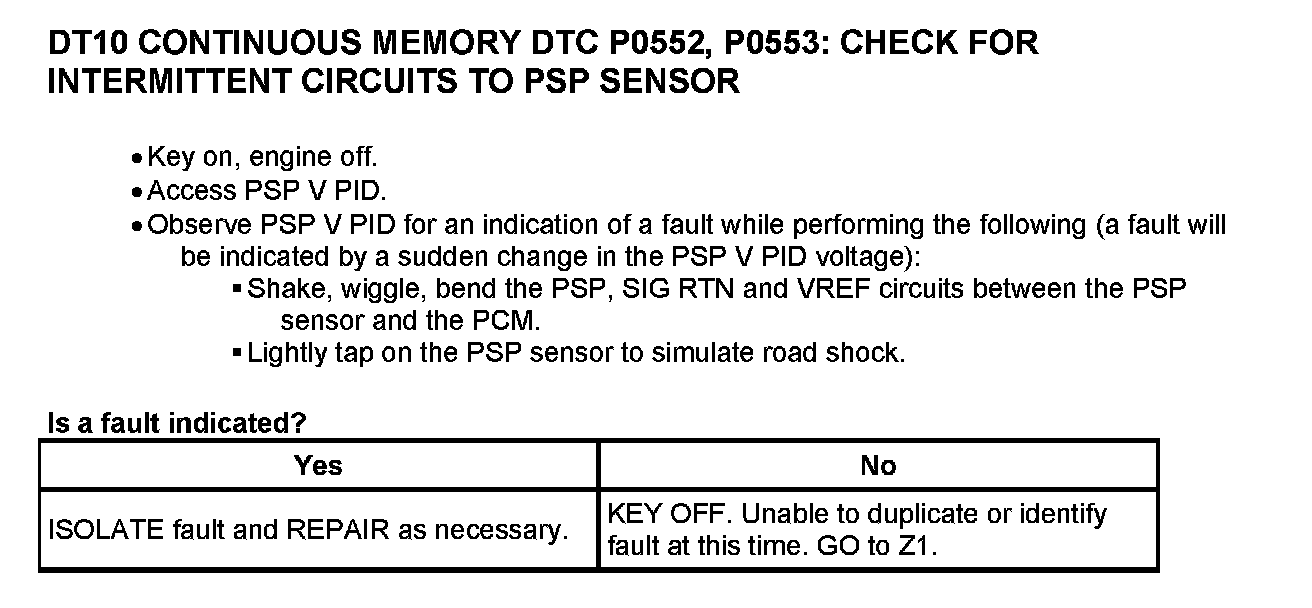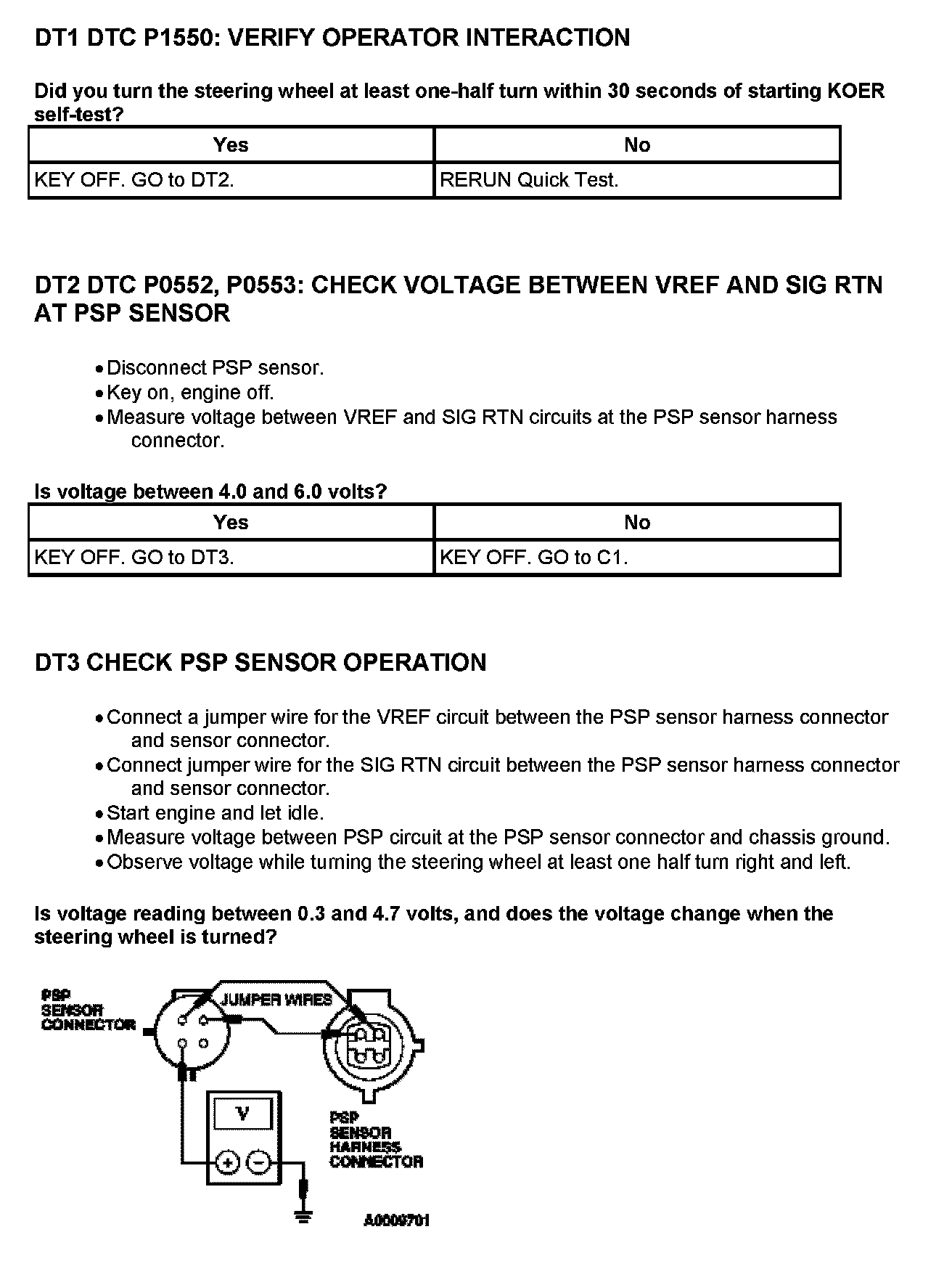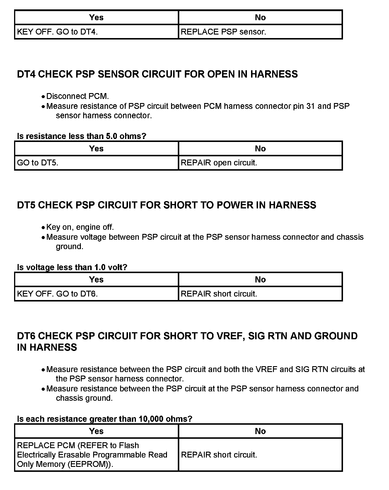 Tests DT: Power Steering Pressure (PSP) Sensor
