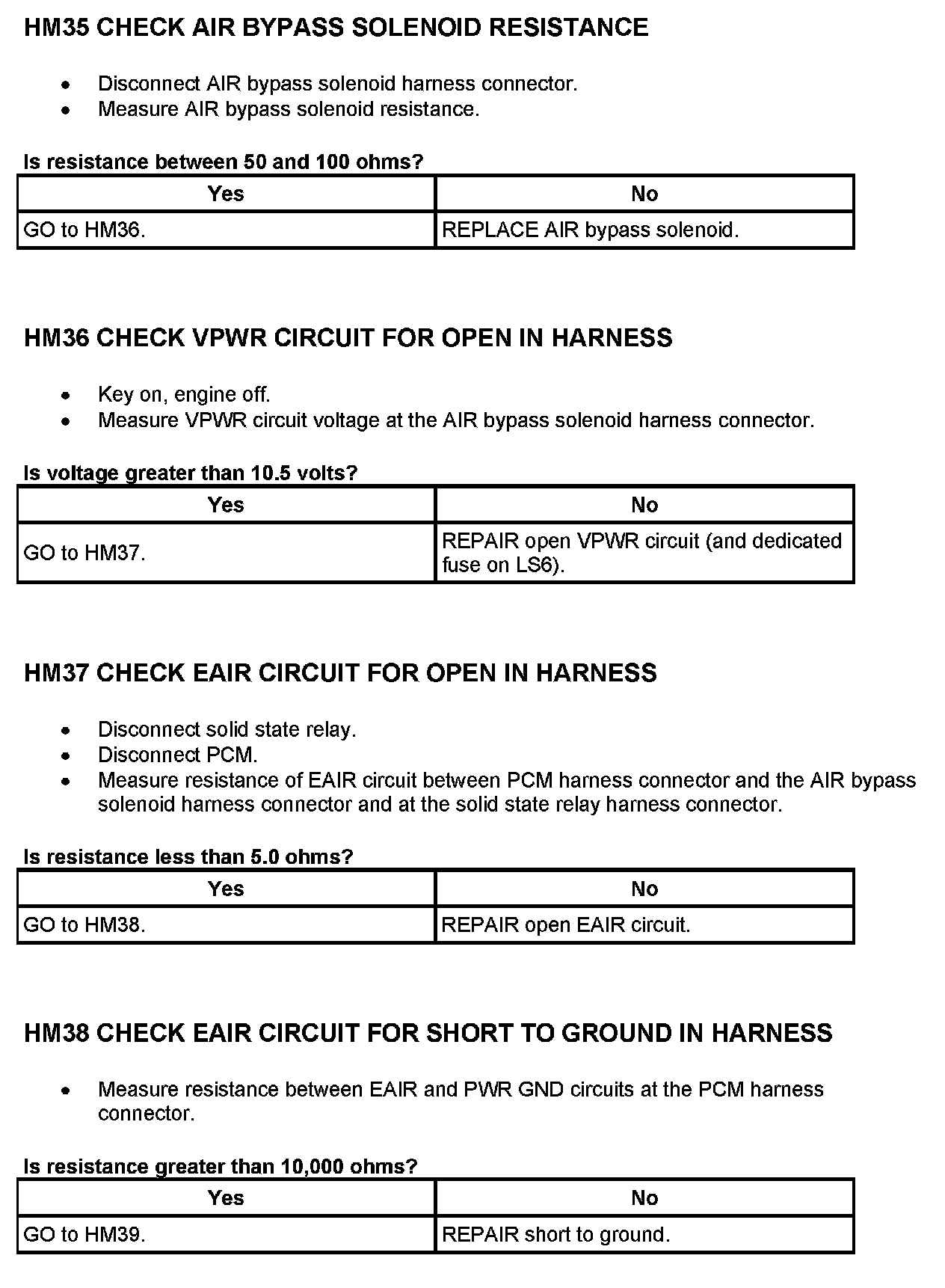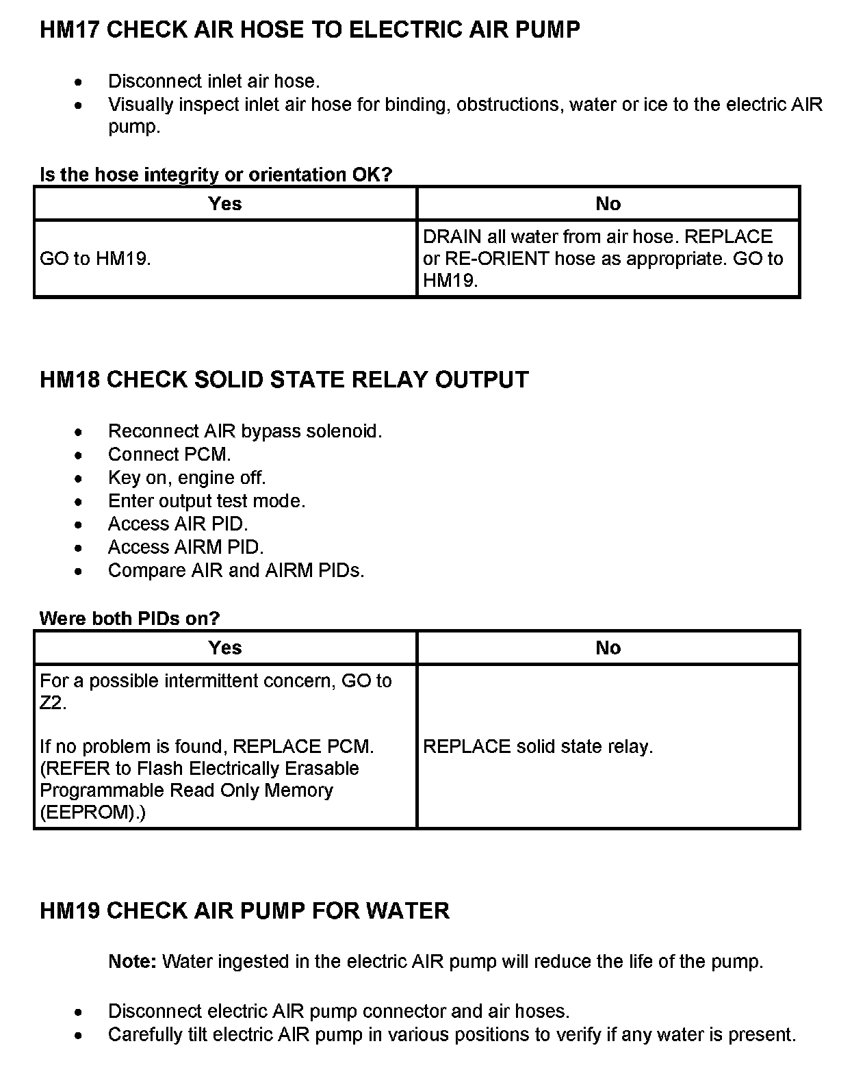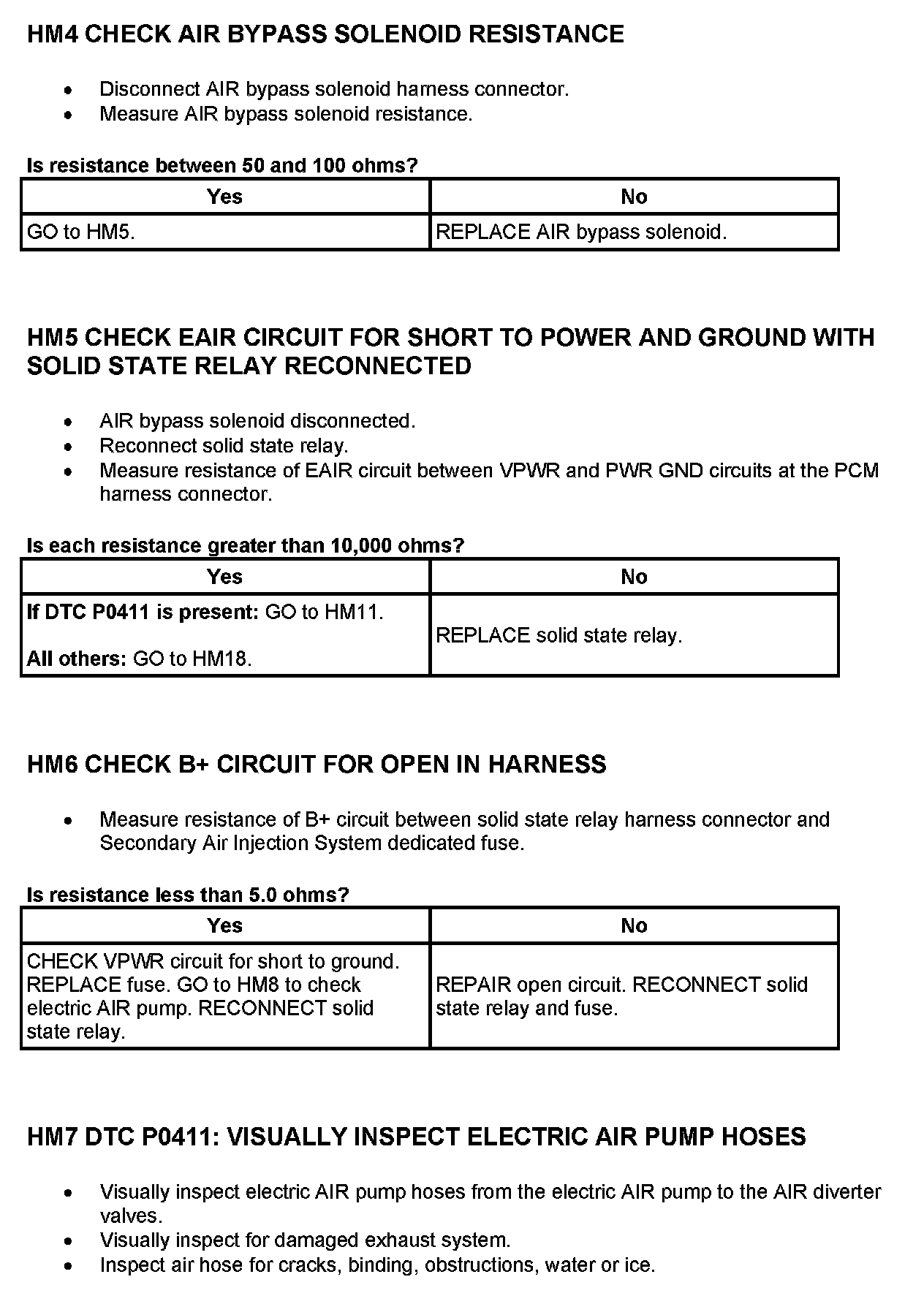 Tests HM: Secondary Air Injection (AIR) System
