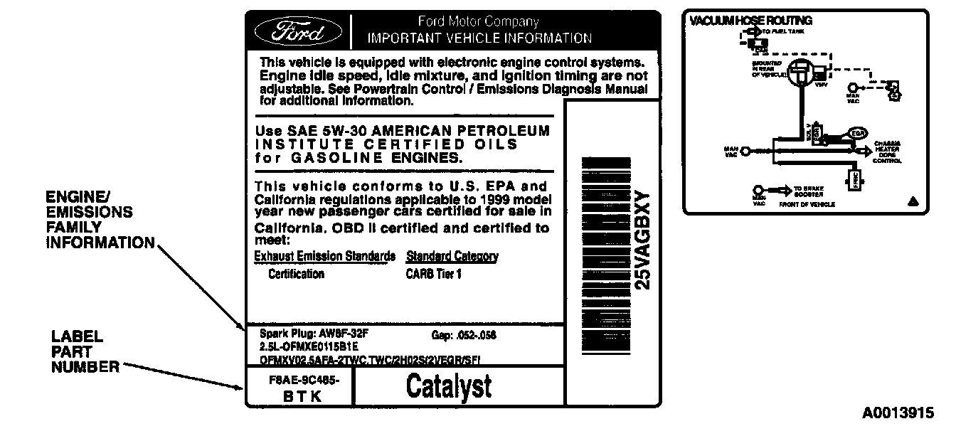 Typical Vehicle Certification Label With Powertrain Calibration Information: