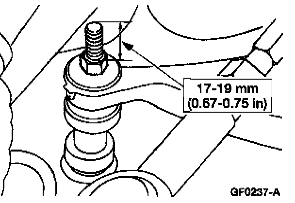 6. Tighten the front stabilizer bar link nuts so that 17 - 19 mm (0.67 - 0.75 inch) of thread is exposed.