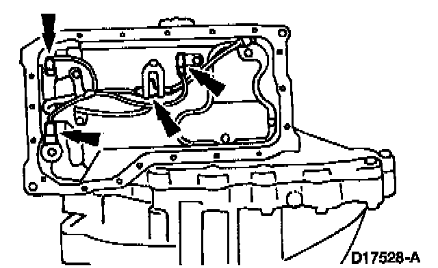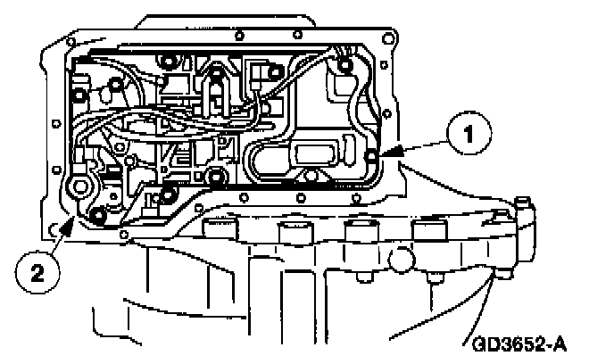 1 Install the transmission fluid pan and oil pan to case gasket.