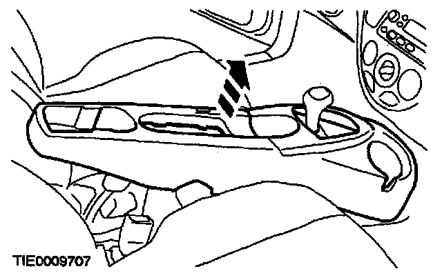 4. Detach the shift lever and parking brake shrouds from the center console.