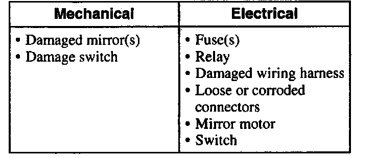 1. Verify the customer concern by operating the rear view mirrors.2. Visually inspect for obvious signs of mechanical or electrical damage.