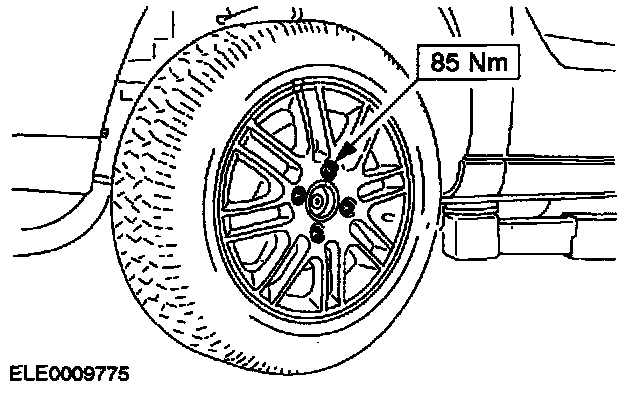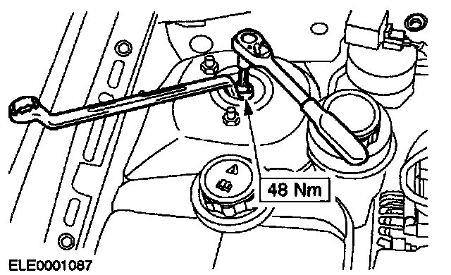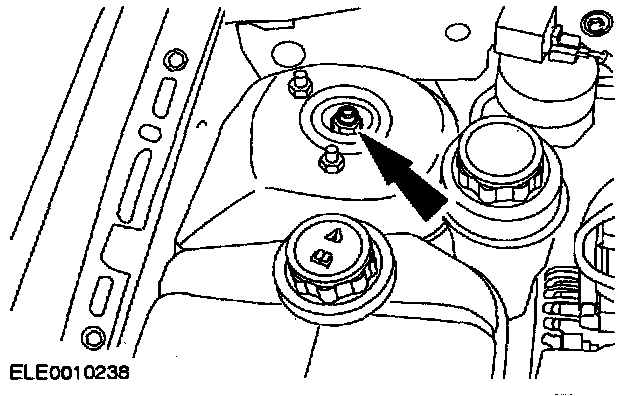 Tighten the left-hand and right-hand suspension strut nut (right-hand side shown).