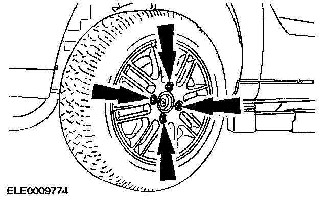 Loosen the nuts on both suspension struts five turns (right-hand side shown).