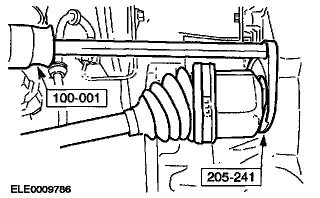 Remove the right-hand front drive halfshaft from the transaxle and tie it up.