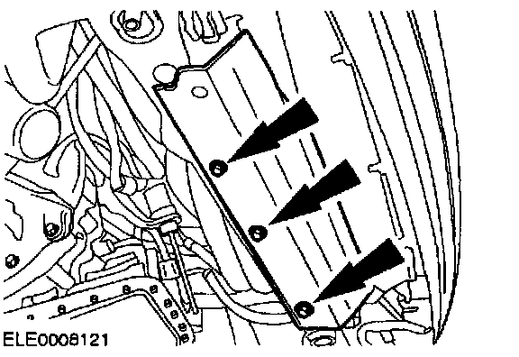 9. Remove the transmission fluid cooler from the two right-hand and the one left-hand bracket (lefthand side shown).