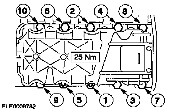 4. Install the oil pan. Tighten the bolts in the indicated sequence.