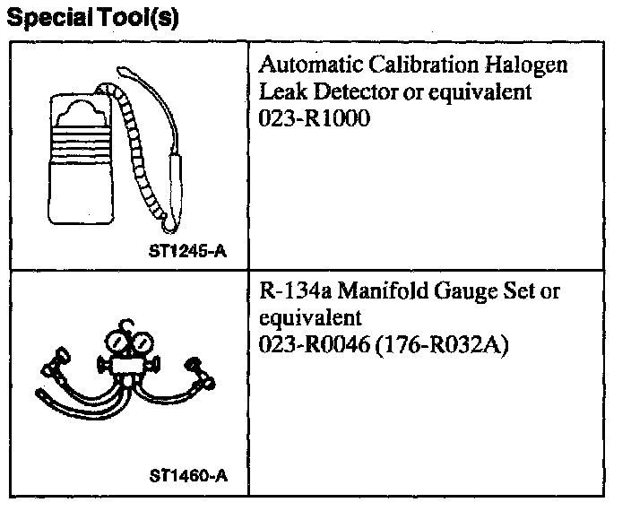2. Use R-134a Automatic Calibration Halogen Leak Detector to leak test the refrigerant system. Follow the instructions included with leak detector for handling and operation techniques.