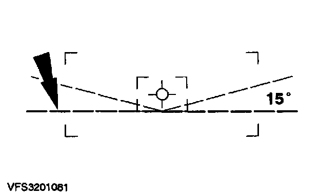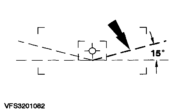 ^ Adjust the dipped beam so that the rising line of the light/dark boundary lies at the intersection of horizontal and the 15 degrees line.