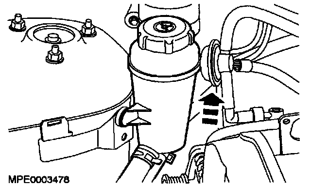 3. Detach and secure the power steering reservoir to one side.