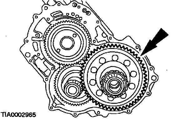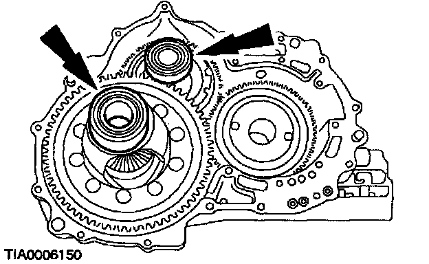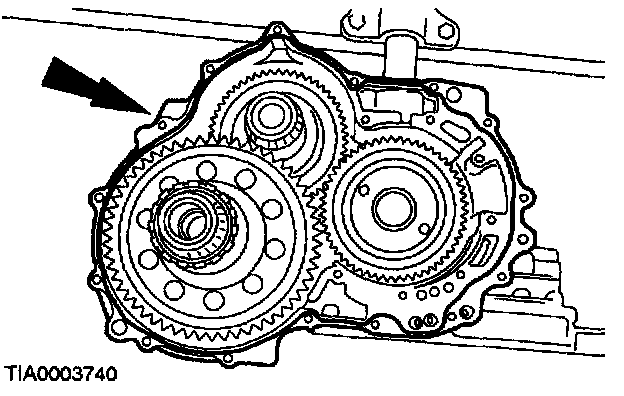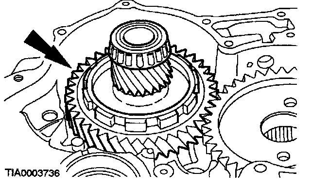 5. CAUTION: Hold the final drive input gear while installing the final drive input gear bearing to prevent it from falling out of the transaxle case.