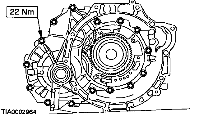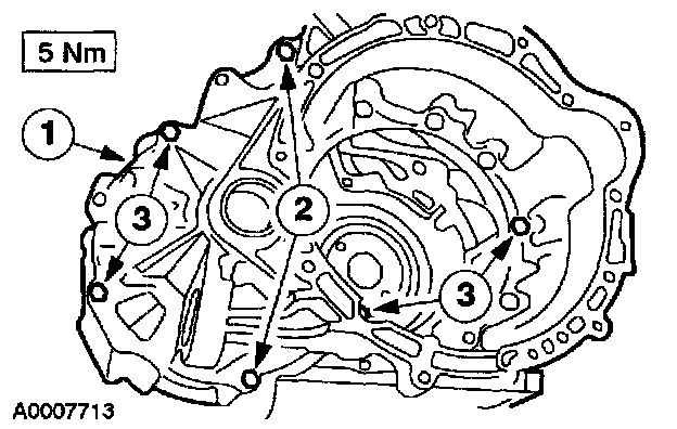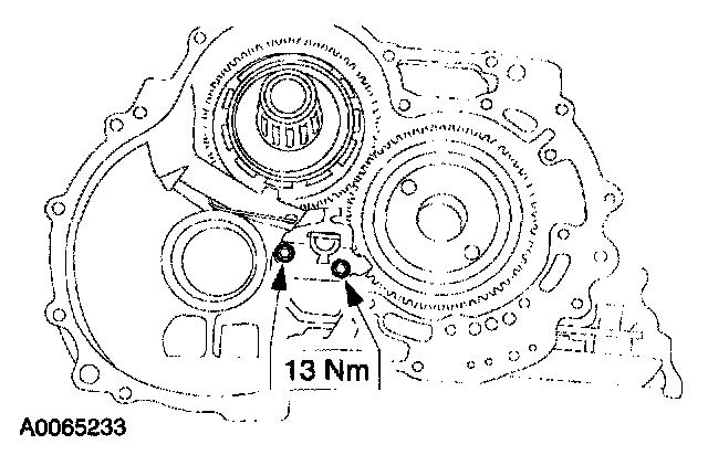32. NOTE: The three bolts need to be loosely installed, then tightened in sequence to compress the intermediate/overdrive spring evenly.
