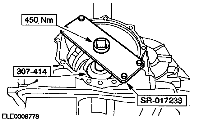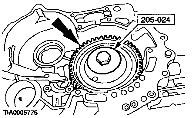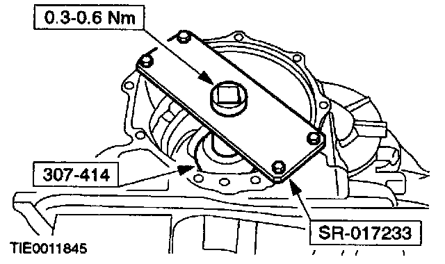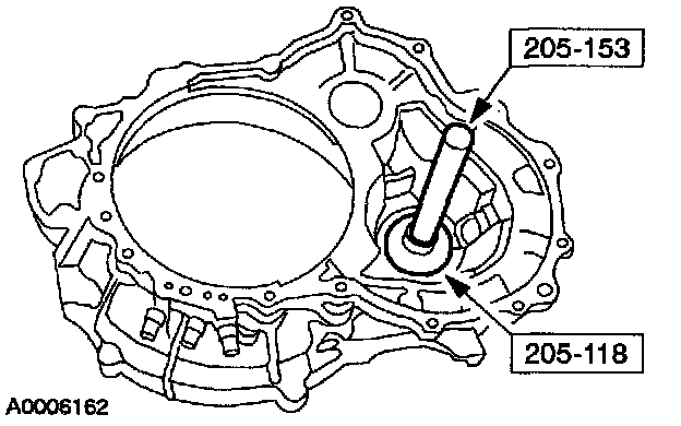 25. Using the special tool, install the correct transfer shaft shim and bearing cup in to the converter housing.
