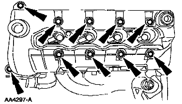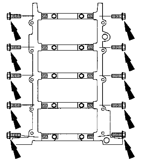 32. Remove the eight bolts and the two studs in the sequence shown. Remove the lower intake manifold.