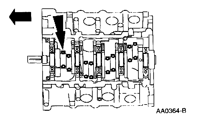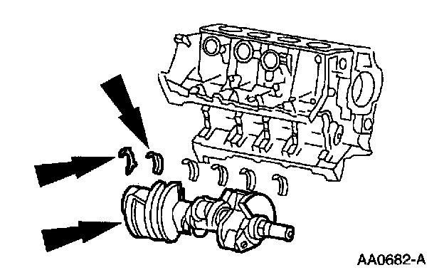 63. Remove the crankshaft, the crankshaft thrust washer, and the crankshaft upper main bearings from the cylinder block.