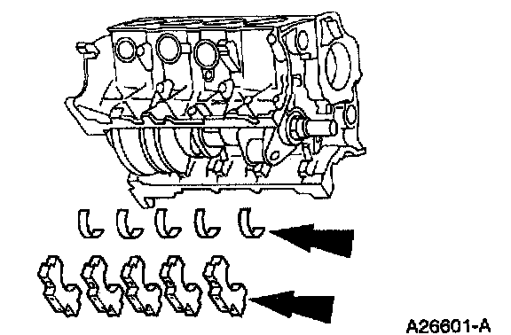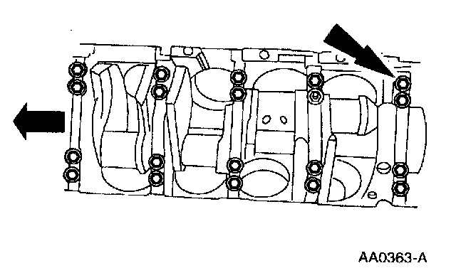 62. Remove the main bearing cap and the crankshaft lower main bearings from the cylinder block.