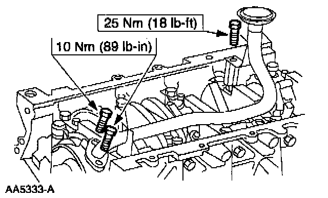 29. Remove the nuts from the cylinder head coolant bypass tube.