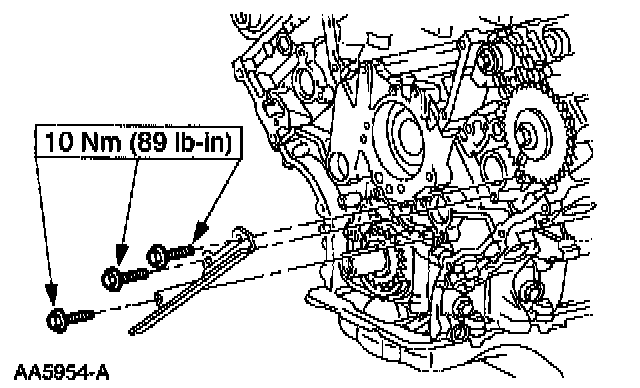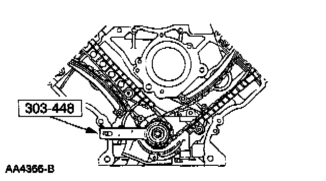 3. Caution: Unless otherwise instructed, at no time when the timing chains are removed and the cylinder heads are installed is the crankshaft or the camshaft to be rotated. Severe piston and valve damage will occur.