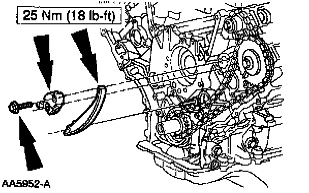13. Note: The LH timing chain is shown; RH is similar.