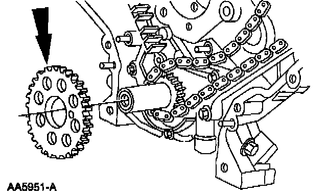 1. Caution: Timing chain procedures must be followed exactly or damage to the pistons or valves will result.