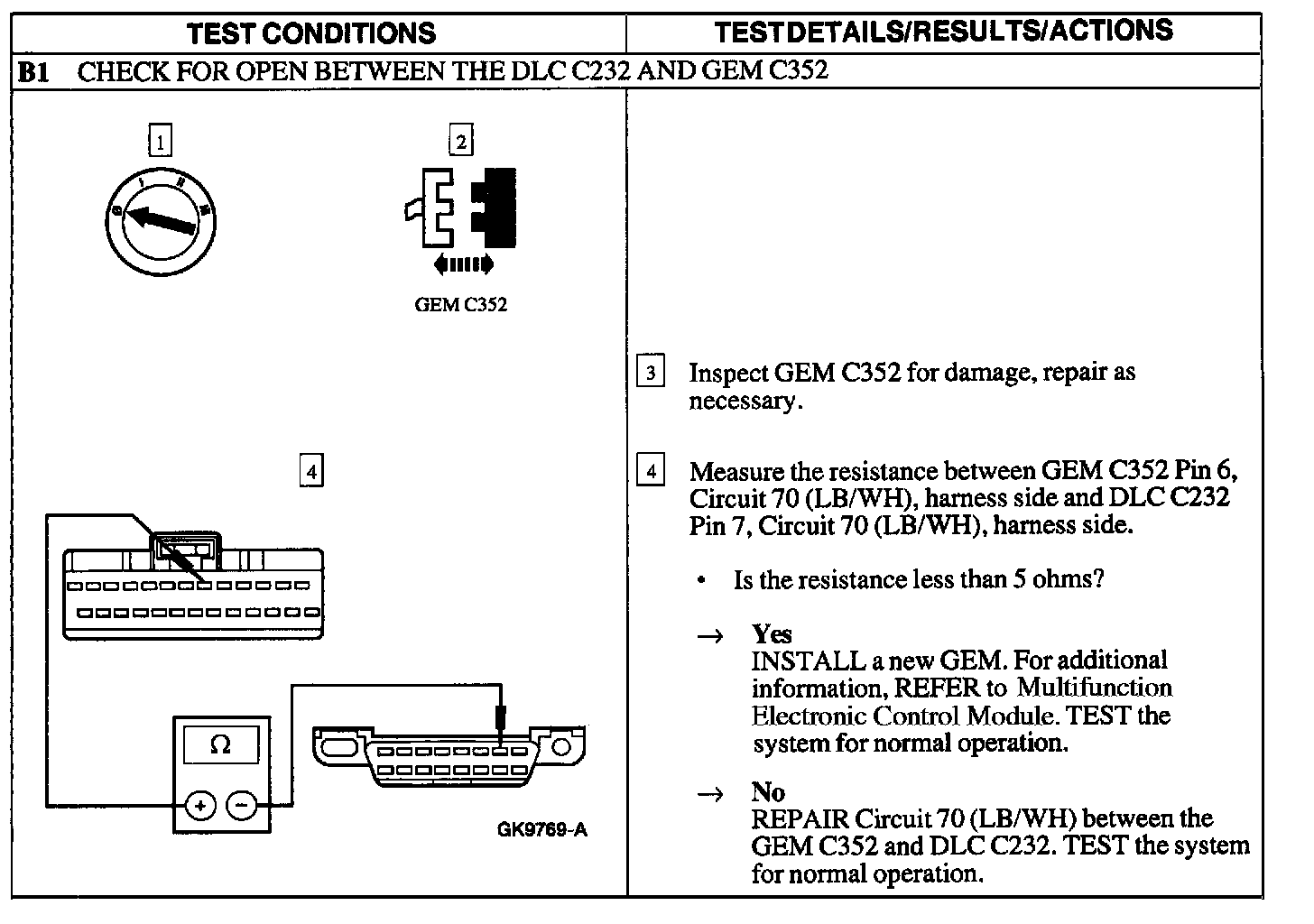 Test B: GEM Module Does Not Respond to the Scan Tool