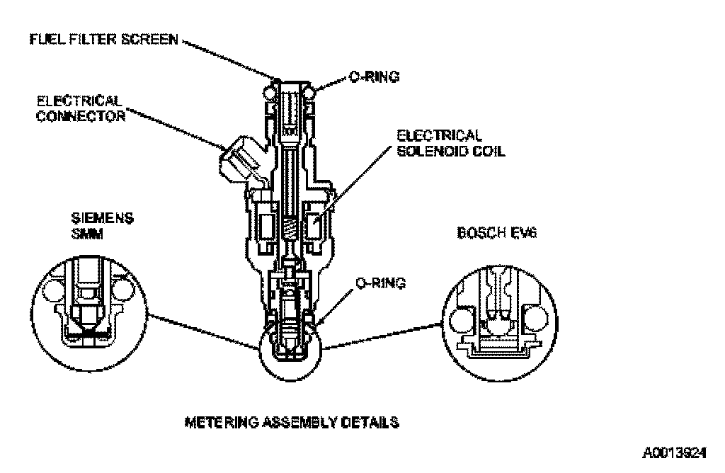 The fuel injector is normally closed and is operated by 12 volt VPWR from the electronic engine control power relay. The ground signal is controlled by the PCM.