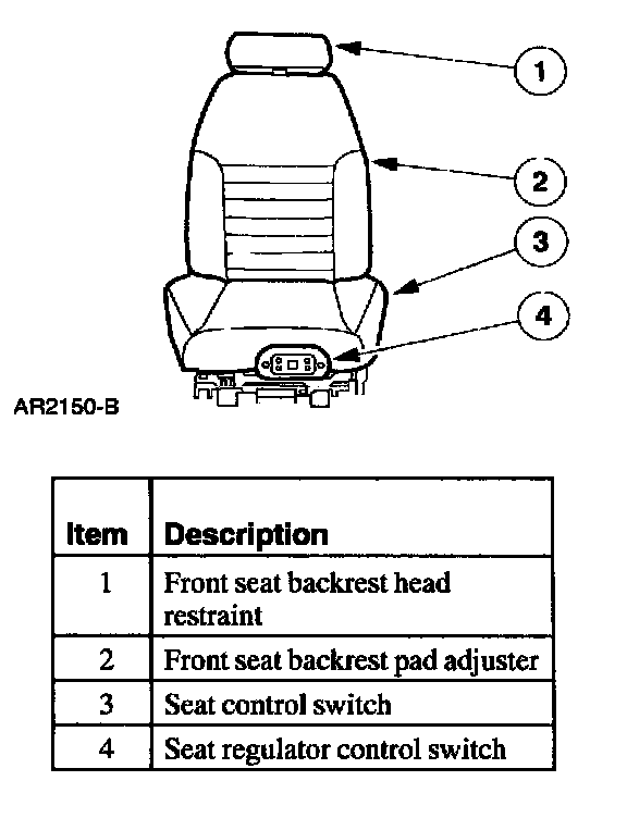 ^ a six-way seat regulator control switch located on the front of the seat.