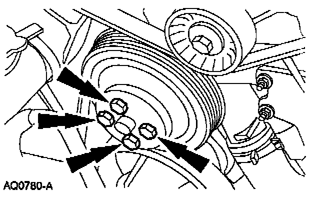 4. Remove the bolts and the water pump pulley.