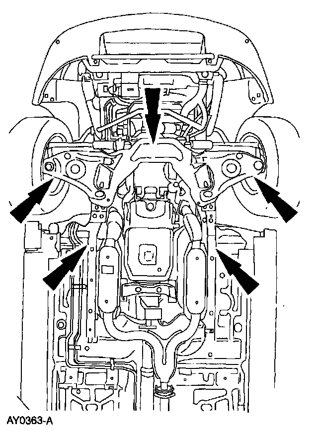 ^ Under no circumstances should the vehicle ever be lifted by the suspension arm brackets, rear stabilizer or differential housing or convertible cross brace. Severe damage to the vehicle could result.