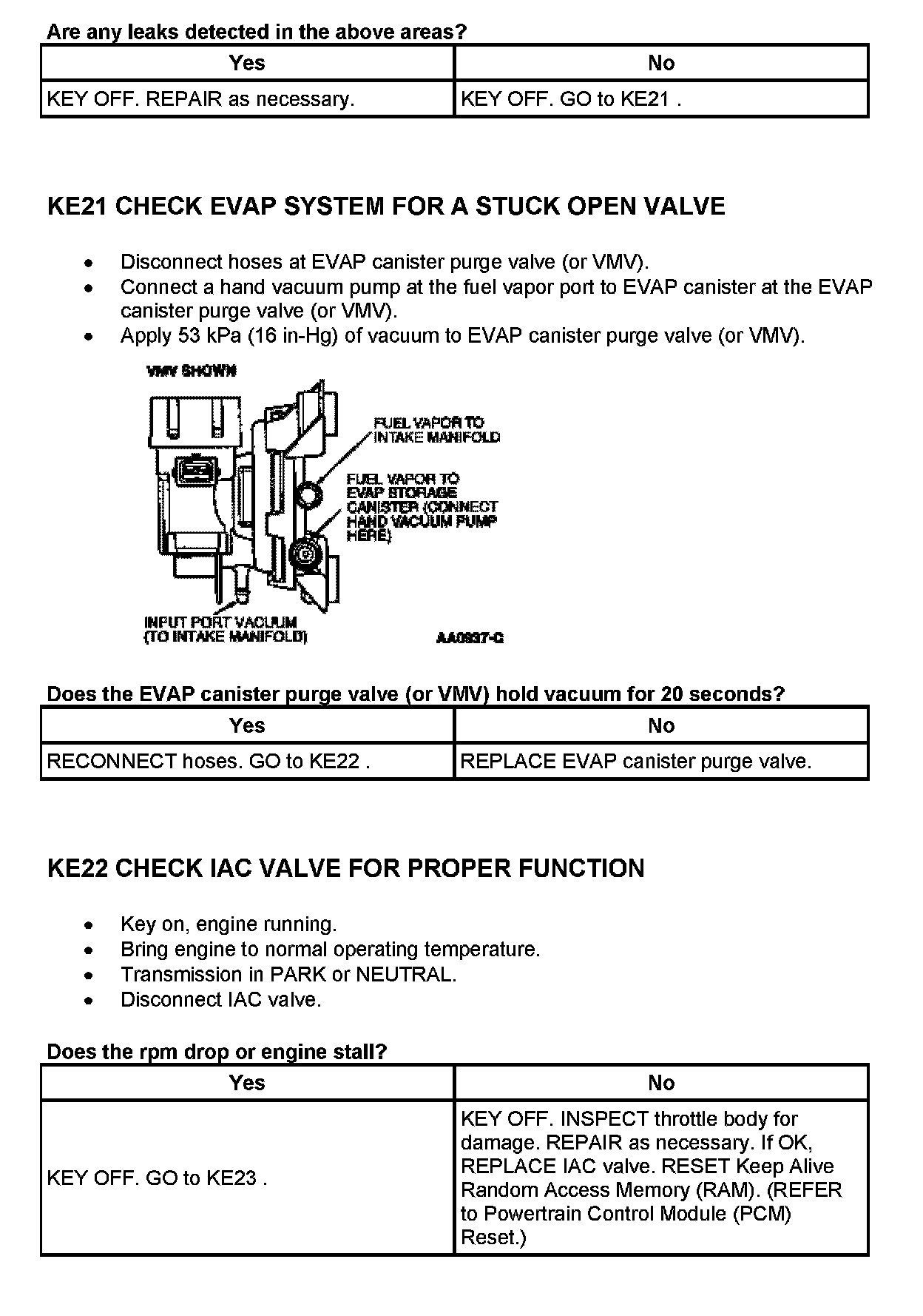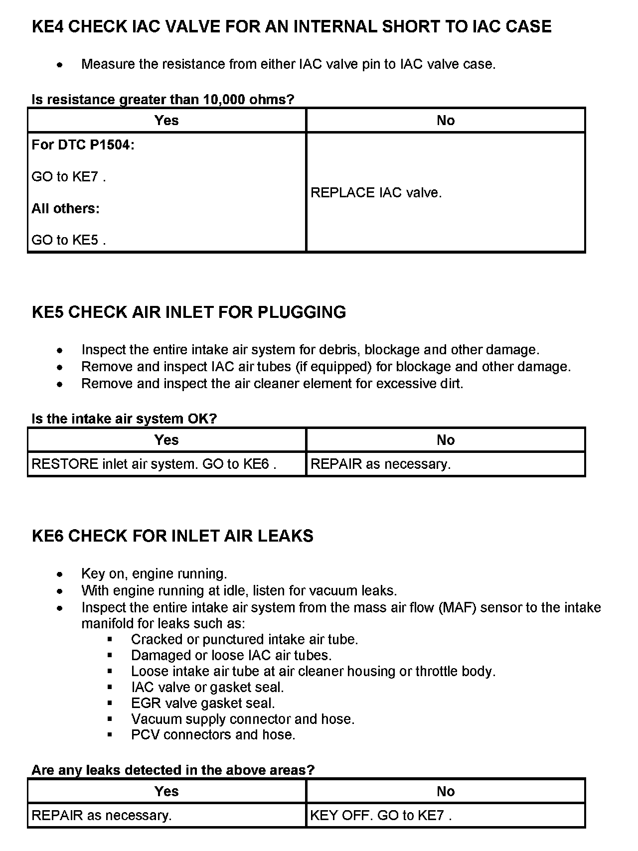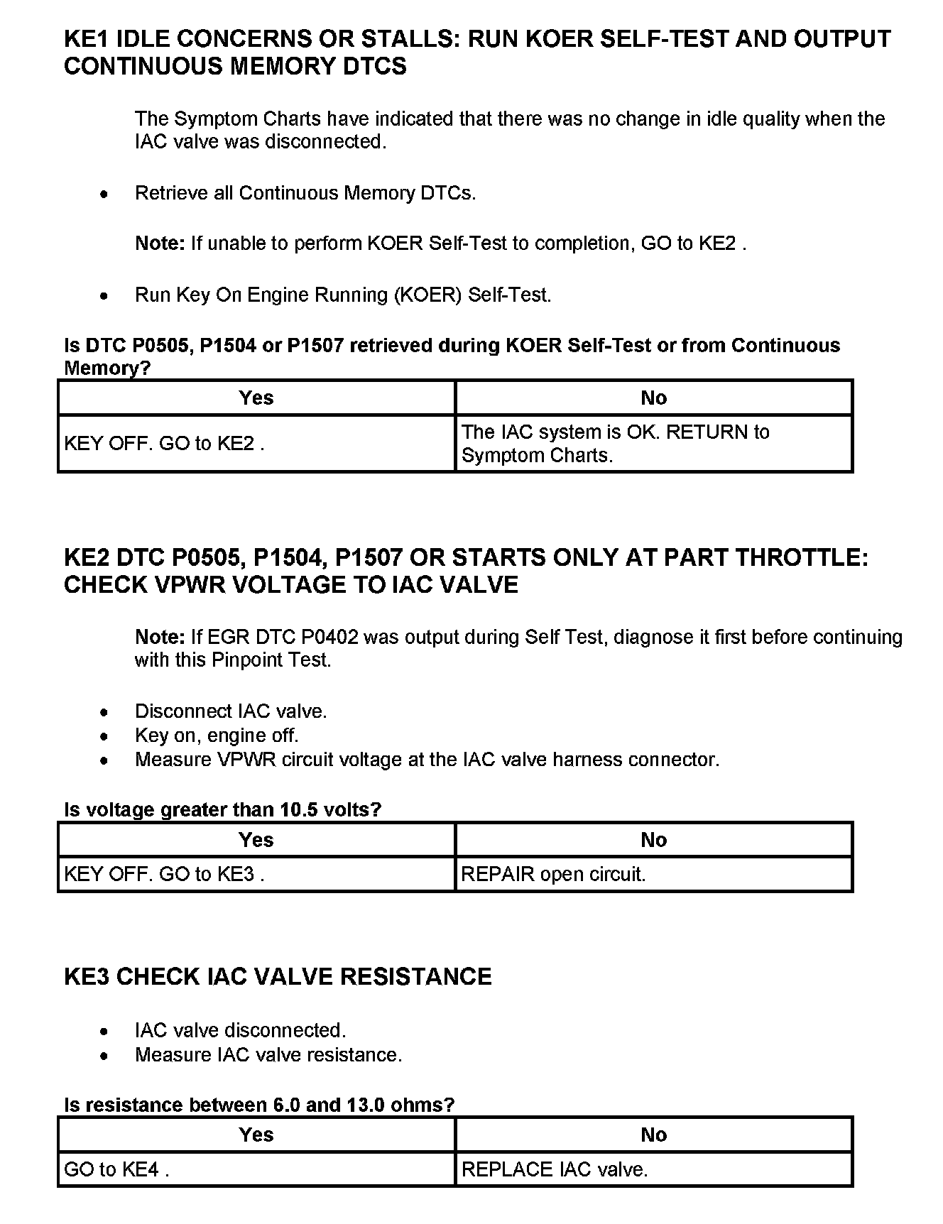Tests KE: Idle Air Control (IAC) Valve