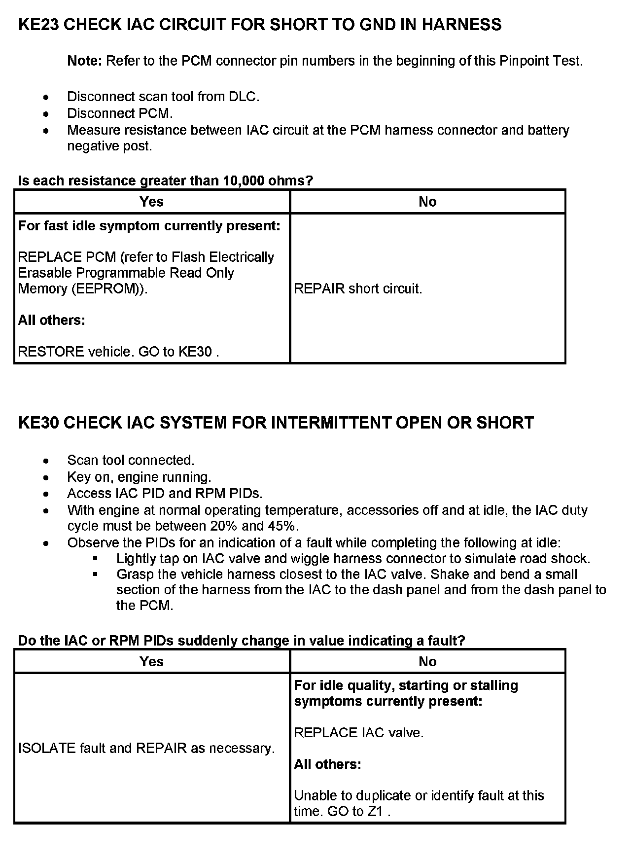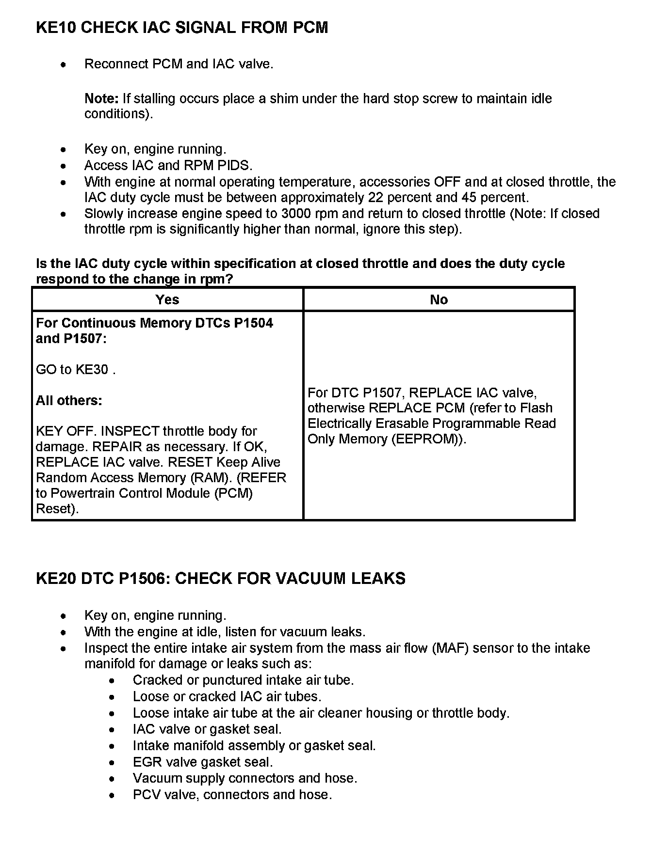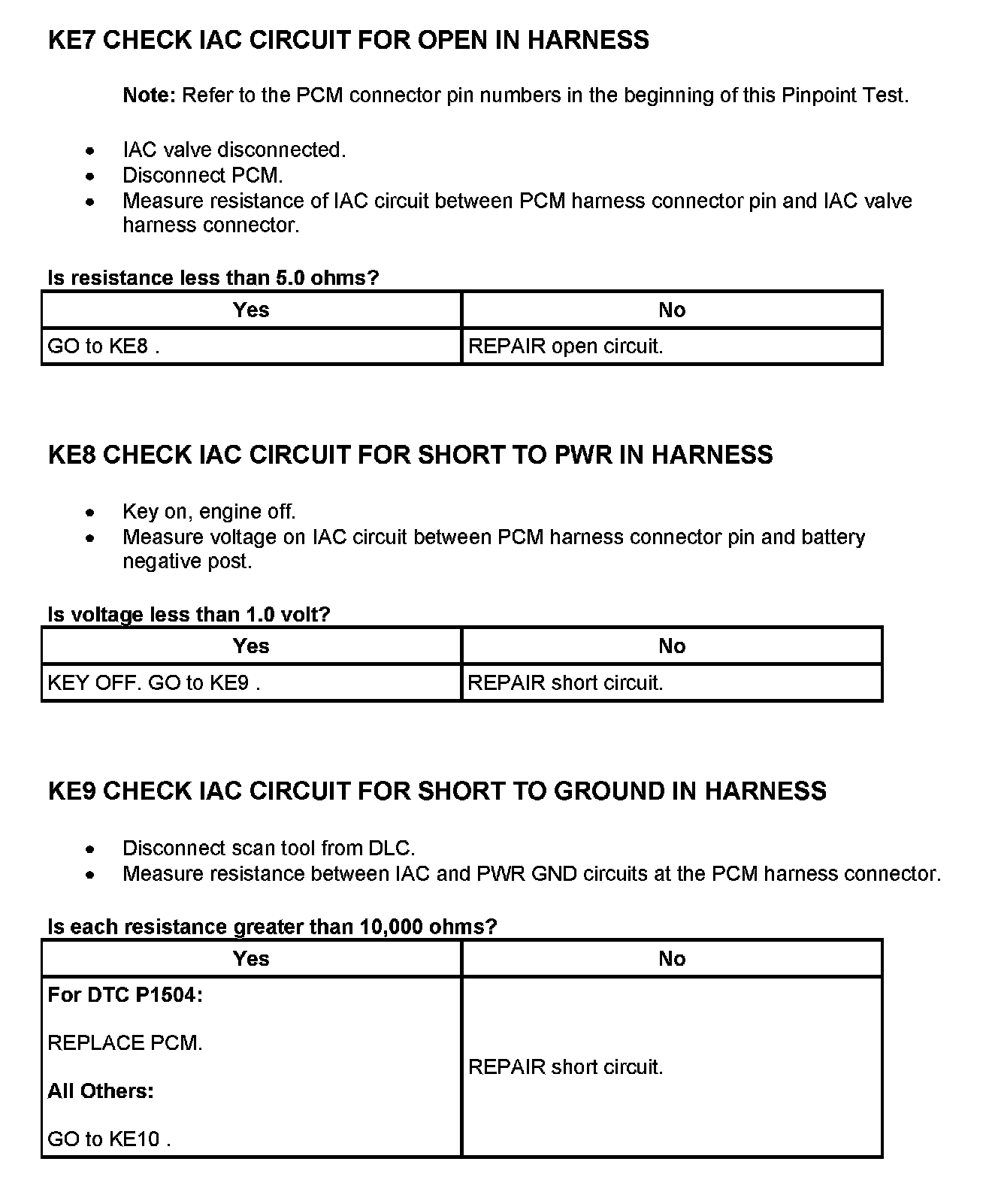 Tests KE: Idle Air Control (IAC) Valve