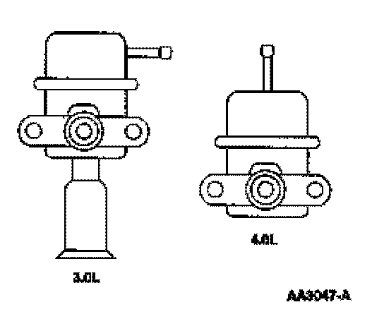 The fuel rail pulse damper (Figure 67) located on the fuel rail reduces fuel system noise caused by the pulsing of the fuel injectors. The vacuum port located on the damper is connected to manifold vacuum to avoid fuel spillage in the event the pulse damper diaphragm were to rupture. (The pulse damper should not be confused with a fuel pressure regulator, it does not regulate fuel rail pressure.)