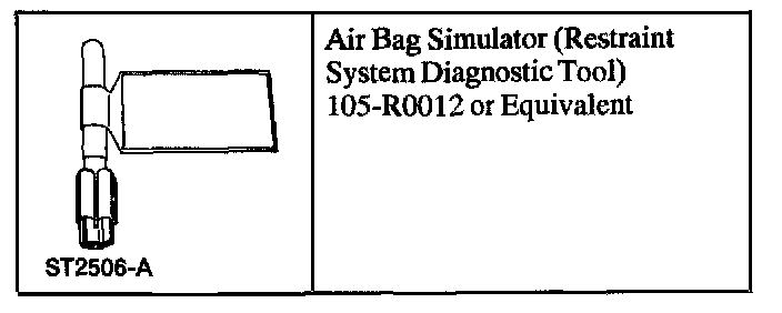WARNING: THE AIR BAG STIMULATOR TOOL IS FOR RESTRAINT SYSTEM SERVICE ONLY. REMOVE FROM VEHICLE PRIOR TO ROAD USE. FAILURE TO REMOVE COULD RESULT IN INJURY AND POSSIBLE VIOLATION OF VEHICLE SAFETY STANDARDS.