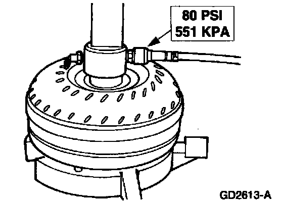 5. With air pressure applied to valve, inspect for leaks at converter hub, seams and studs. A soap bubble solution may be applied around those areas to aid in diagnosis. If leaks are present, replace converter.