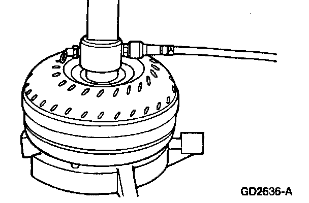 Apply air pressure to valve on the Torque Converter Leak Tester.