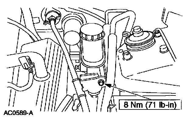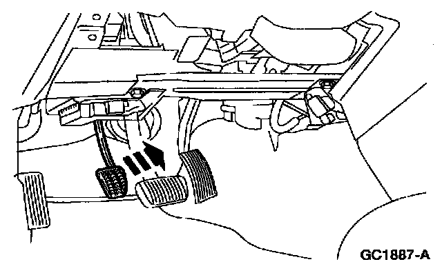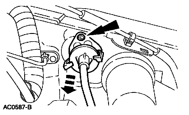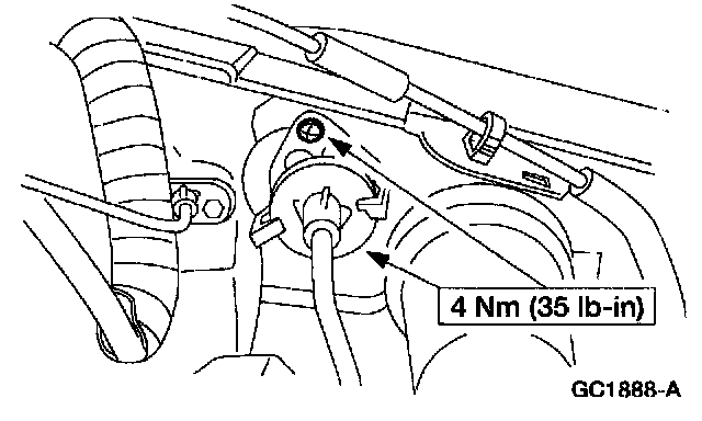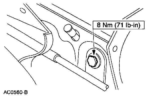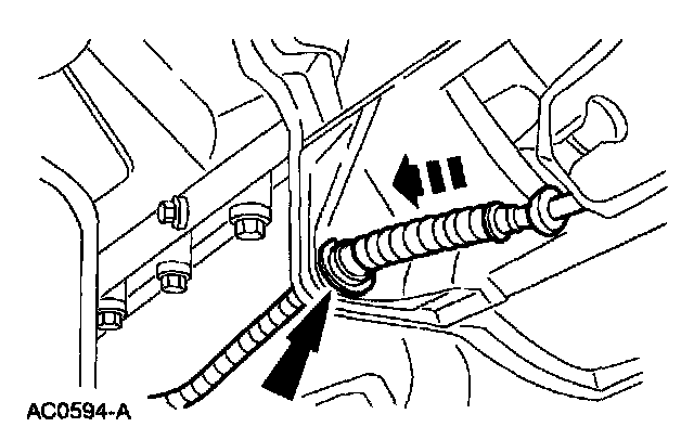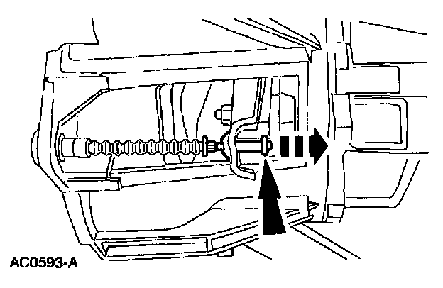 RemovalCAUTION: Whenever the clutch release lever cable is disconnected for any reason, such as transmission removal, clutch pedal components or clutch release lever cable replacement, it is imperative the correct method for installing the clutch release lever cable be followed. Incorrect installation may damage components or cause system failure.