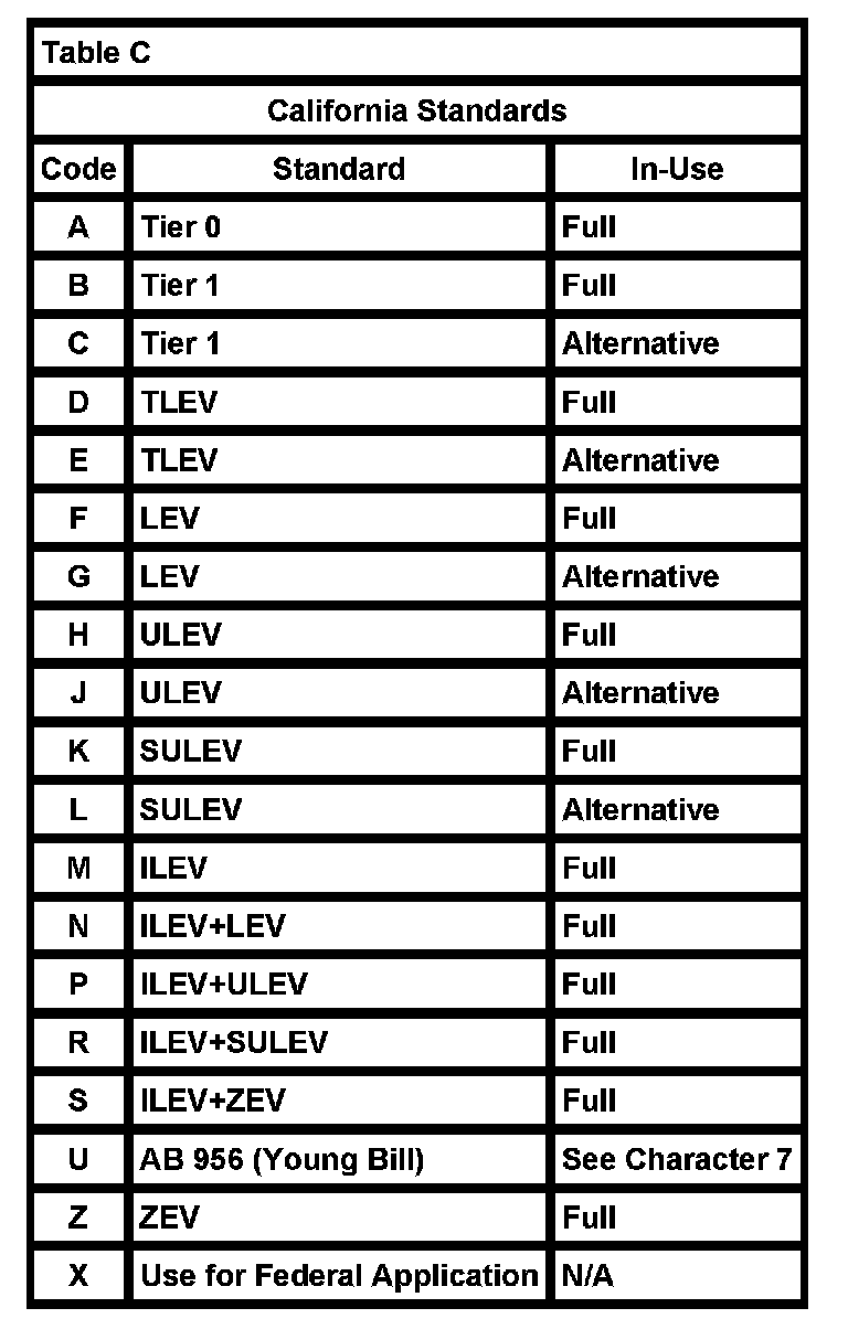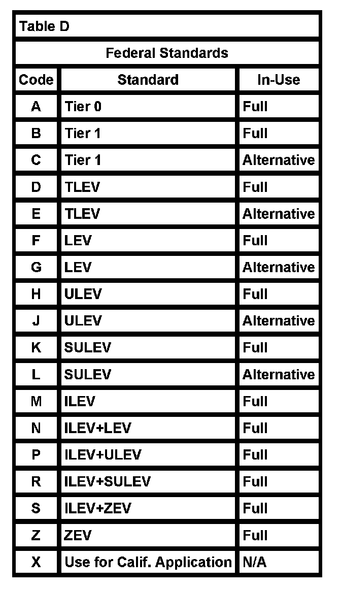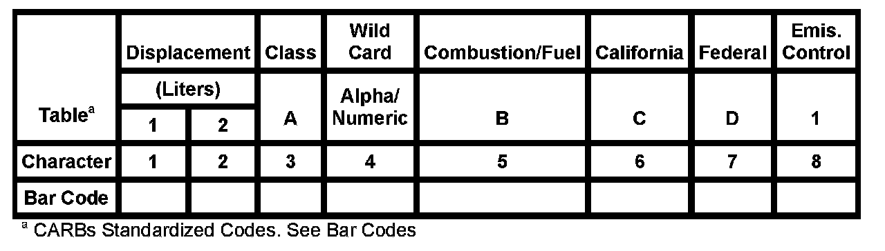 Manufacturers must use a standardized system for identifying their individual engine families. The system described below was developed by the Environmental Protection Agency (EPA) in 1991 to meet new regulatory requirements for 1994 and later model years.